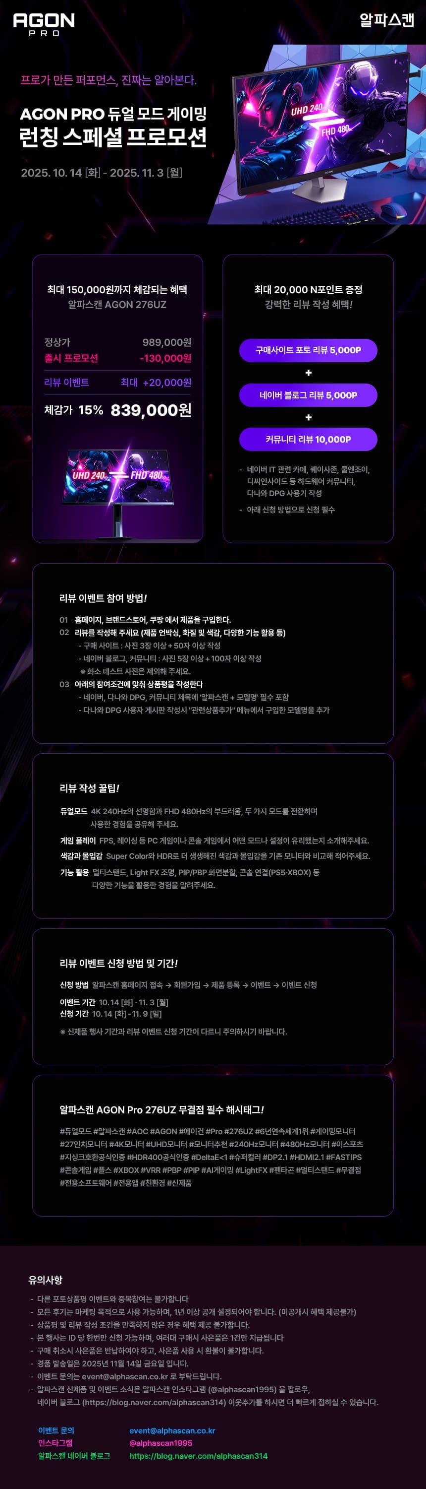 [알파스캔] 프로가 만든 퍼포먼스, 진짜는 알아본다. AGON 듀얼 모드 게이밍 276UZ 런칭 프로모션