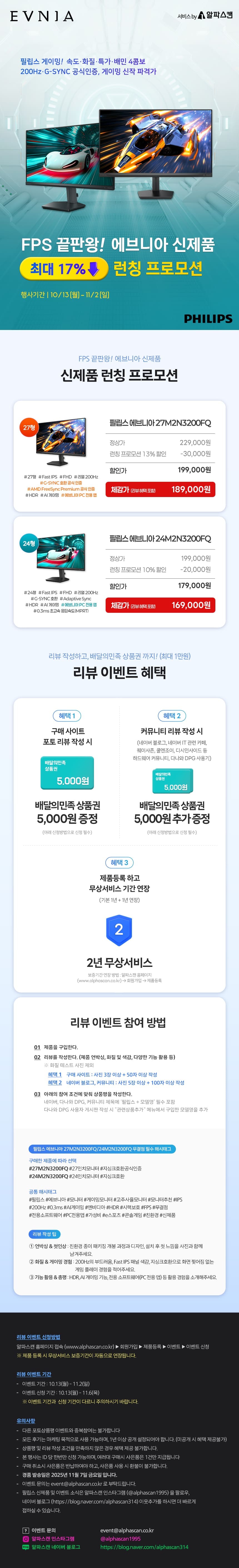 [필립스] FPS 끝판왕! 에브니아 신제품 27/24M2N3200FQ 런칭 프로모션