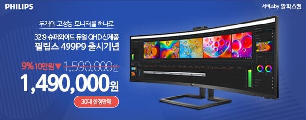 필립스 모니터 공식 유통사 ㈜알파스캔이 49인치 듀얼 QHD(5120 x 1440) 고해상도에 HDR 400 공식 인증과 함께 USB-C 도킹 스테이션이 내장된 전문가용 프리미엄급 모니터 신제품을 국내 시장에 출시했다. 32:9 비율의 압도적인 커브드 Super Wide 화면에 Adaptive Sync와 KVM 스위치, PBP를 지원하고 웹캠을 내장했다.
