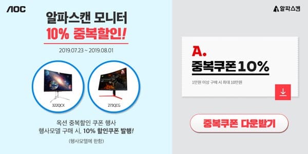 [할인] 알파스캔, 27인치 32인치 모니터 10% 중복할인 쿠폰 대전